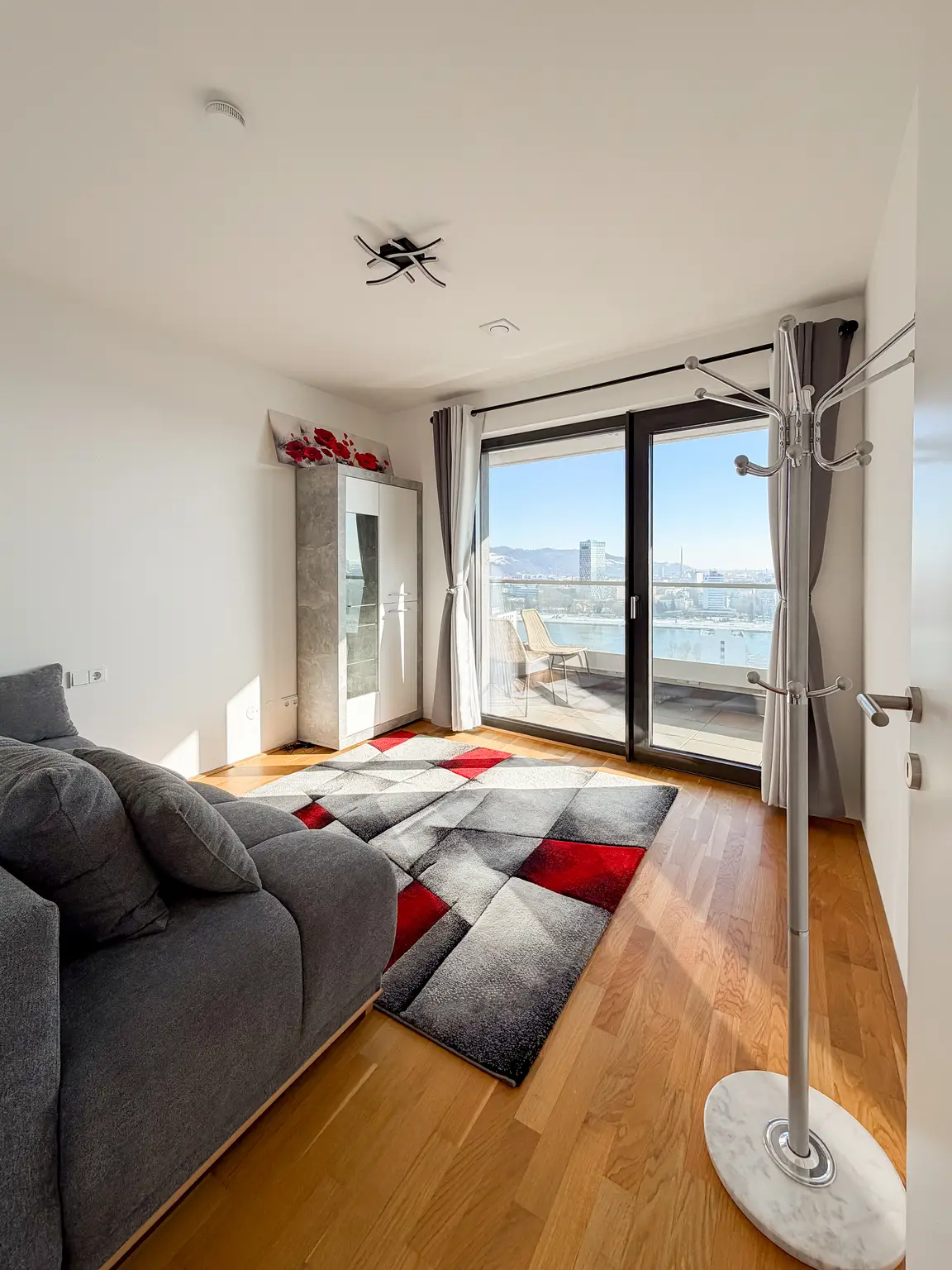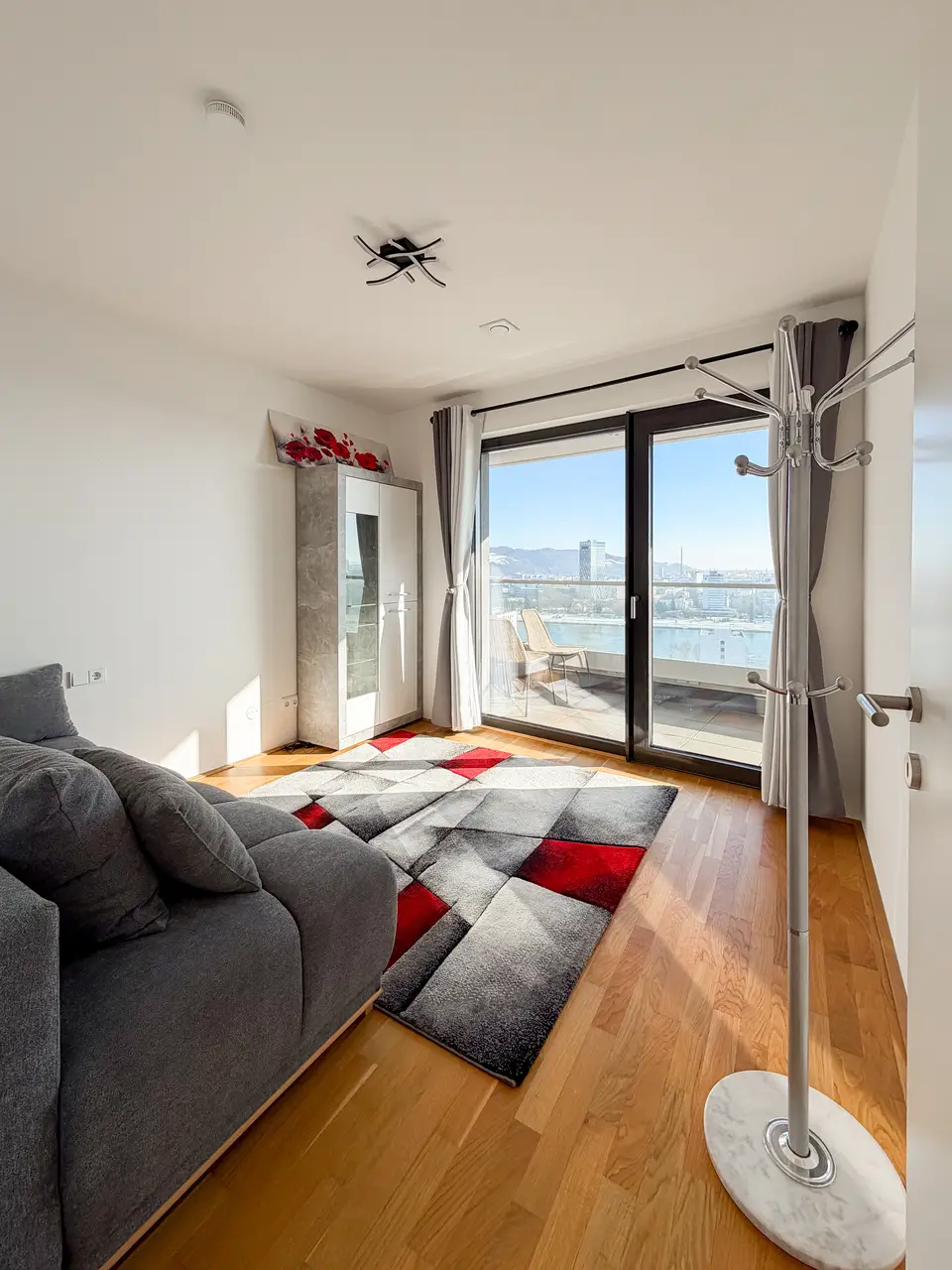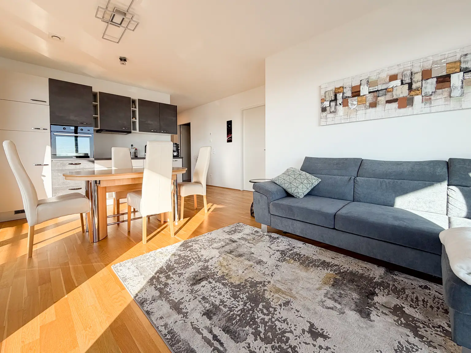 Die Wohnung befindet sich im 18. Obergeschoss des modernen Bruckner Towers und beeindruckt mit einem einzigartigen Weitblick über Linz. Der großzügige, rund 30 m² große Balkon in U-Form ist von jedem Zimmer aus begehbar und lädt dazu ein, den Sonnenlauf zu genießen und den herrlichen Panoramablick auf die Donau, den Pöstlingberg und die Stadt zu erleben.
