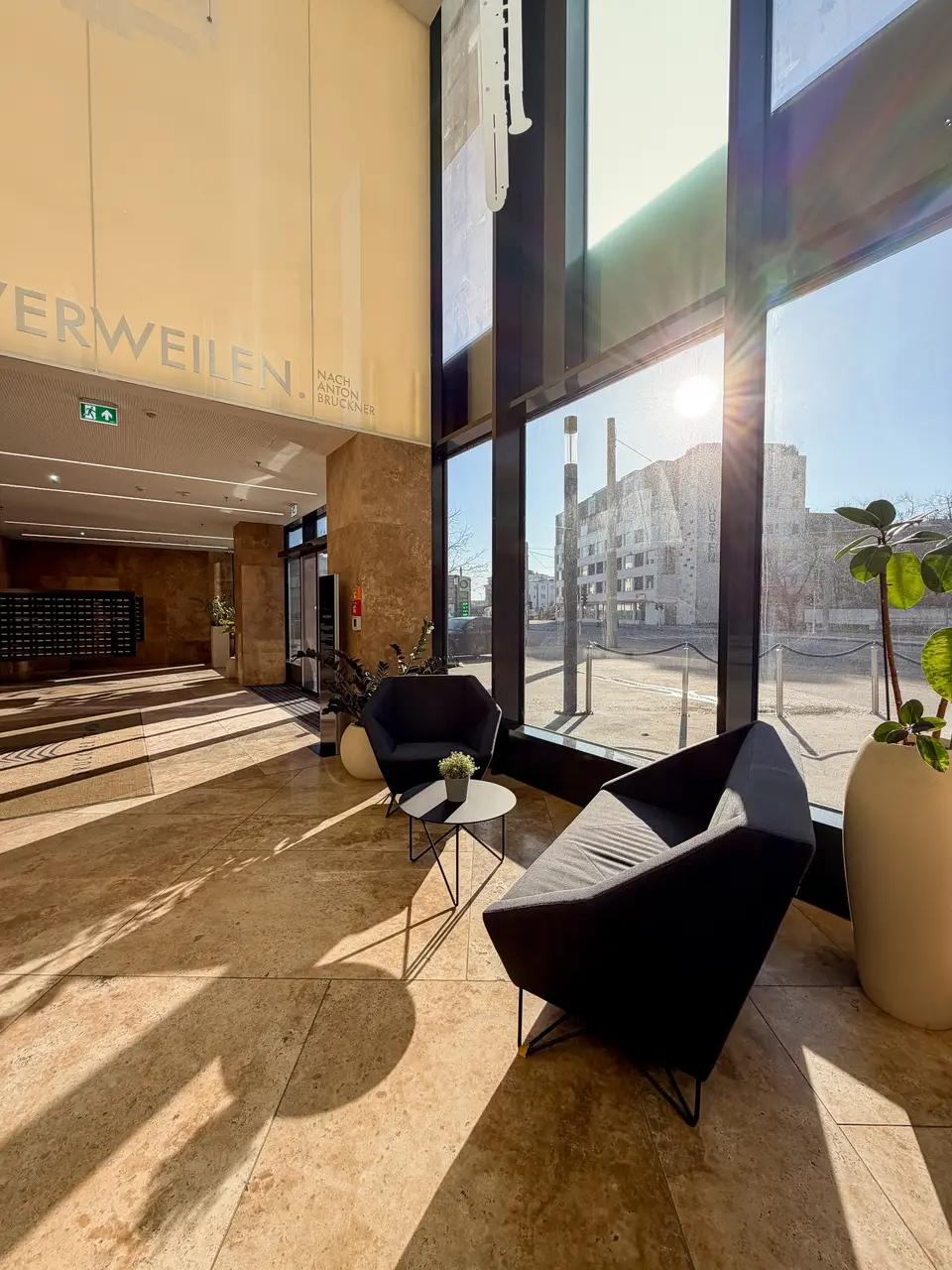 Im Eingangsbereich des Gebäudes steht ein Concierge-Service zur Verfügung, der den Bewohnerinnen und Bewohnern bei alltäglichen Anliegen unterstützend zur Seite steht und für zusätzlichen Komfort sowie Sicherheit sorgt.