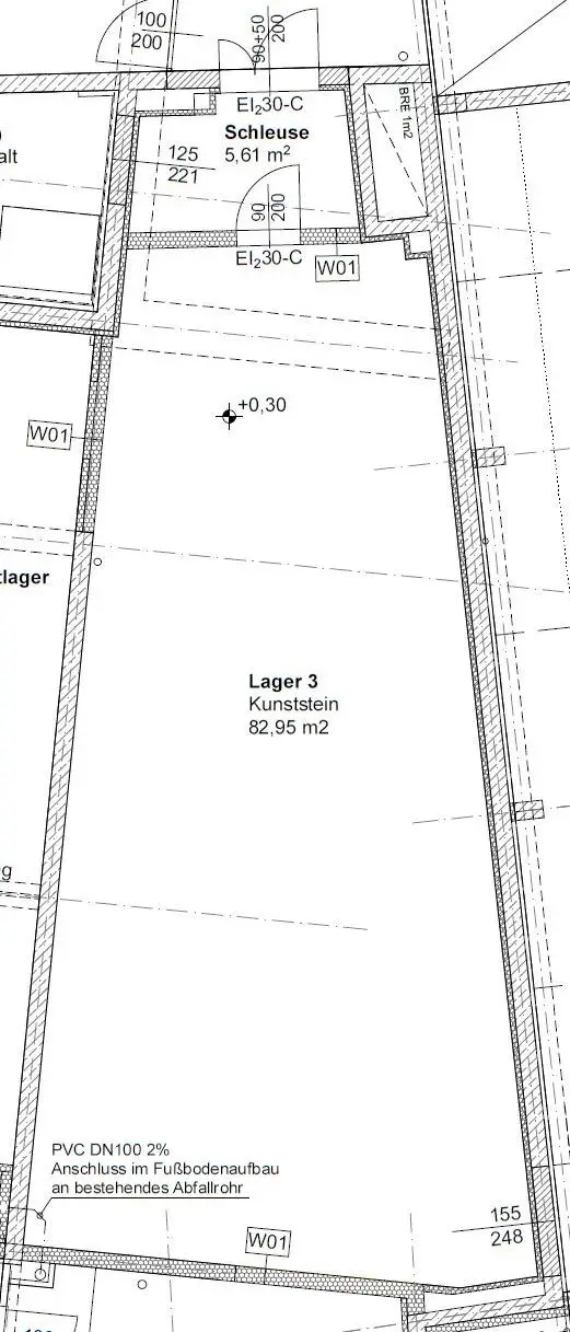 88,56 m² großes Lager inkl. Schleuse und Rampe für Anlieferung.