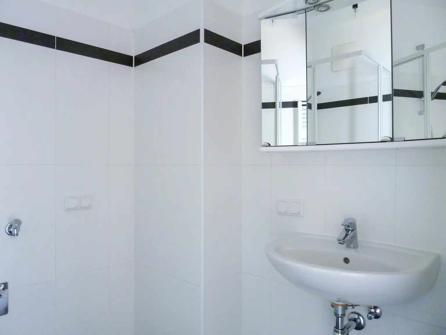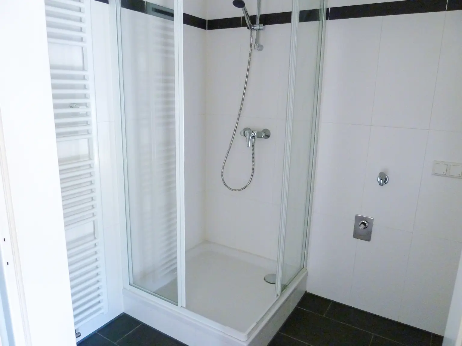 - Badezimmer mit Dusche und Waschmaschinenanschluss