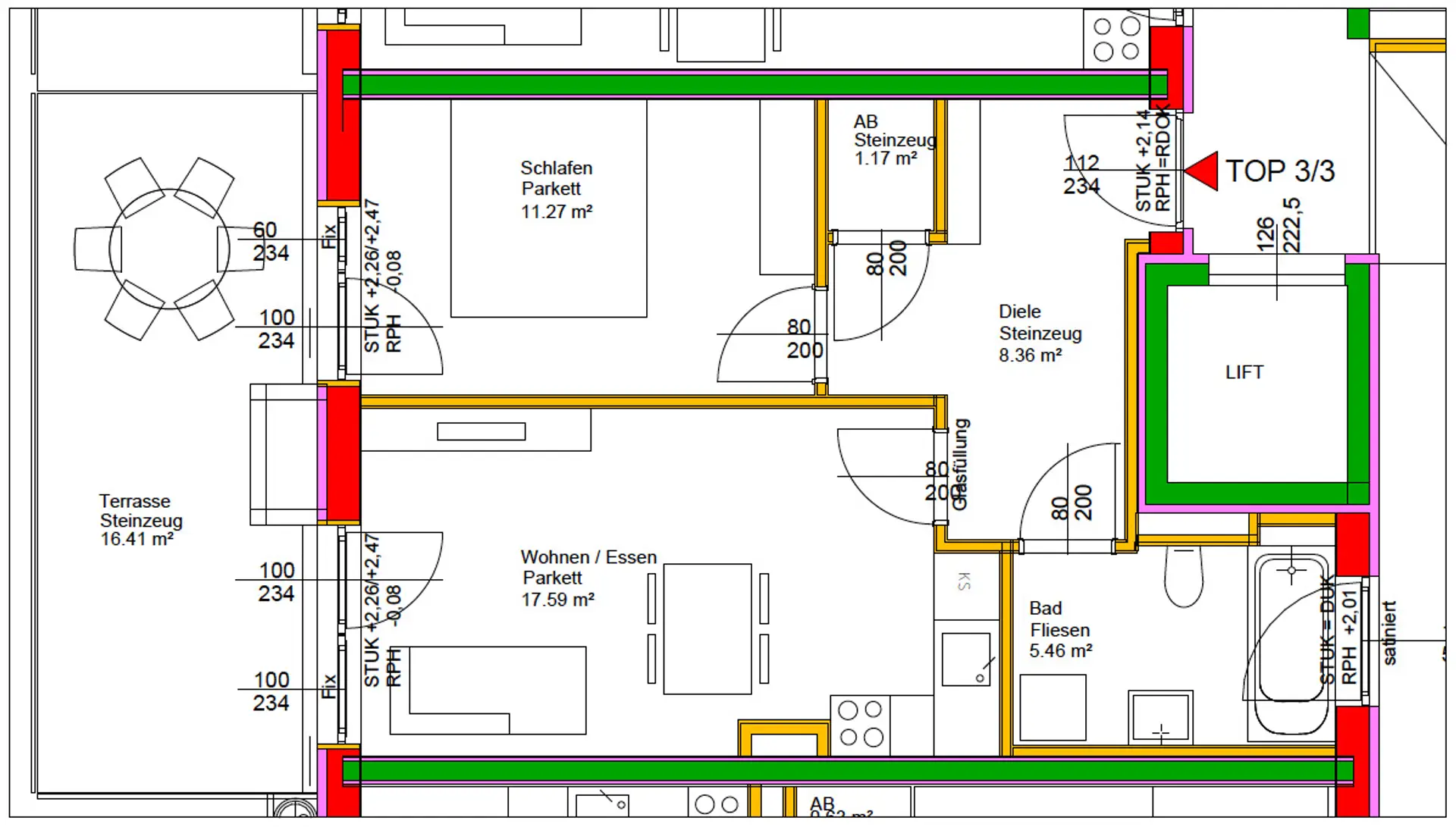 Jede Wohnung verfügt über eine moderne, möblierte Küche inklusive E-Geräten, sowie ein stilvoll ausgestattetes Badezimmer. Für zusätzlichen Stauraum sorgt ein eigenes Kellerabteil, das sich bequem im 1. Kellergeschoss befindet. Alle Wohnungen sind mit großzügigen Terrassen ausgestattet, die viel Freiraum im Freien bieten. Besonders hervorzuheben sind die fünf Penthouse-Wohnungen, die durch großzüge Grundrisse und herrliche Ausblicke überzeugen.