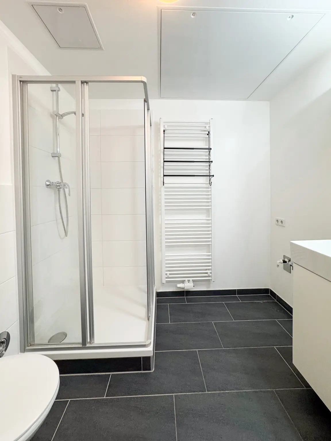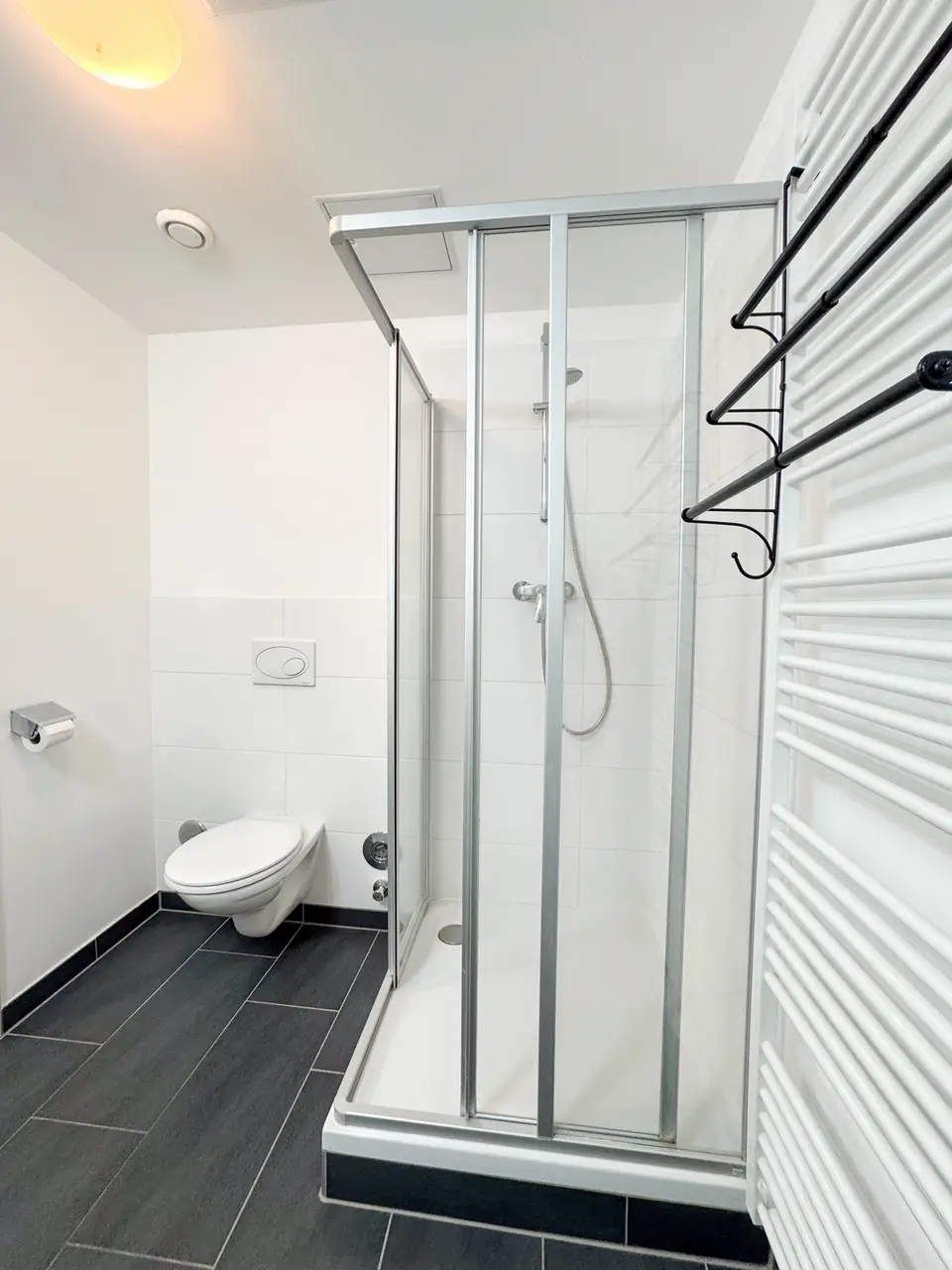 - Badezimmer mit Badewanne und Waschmaschinenanschluss, WC separat