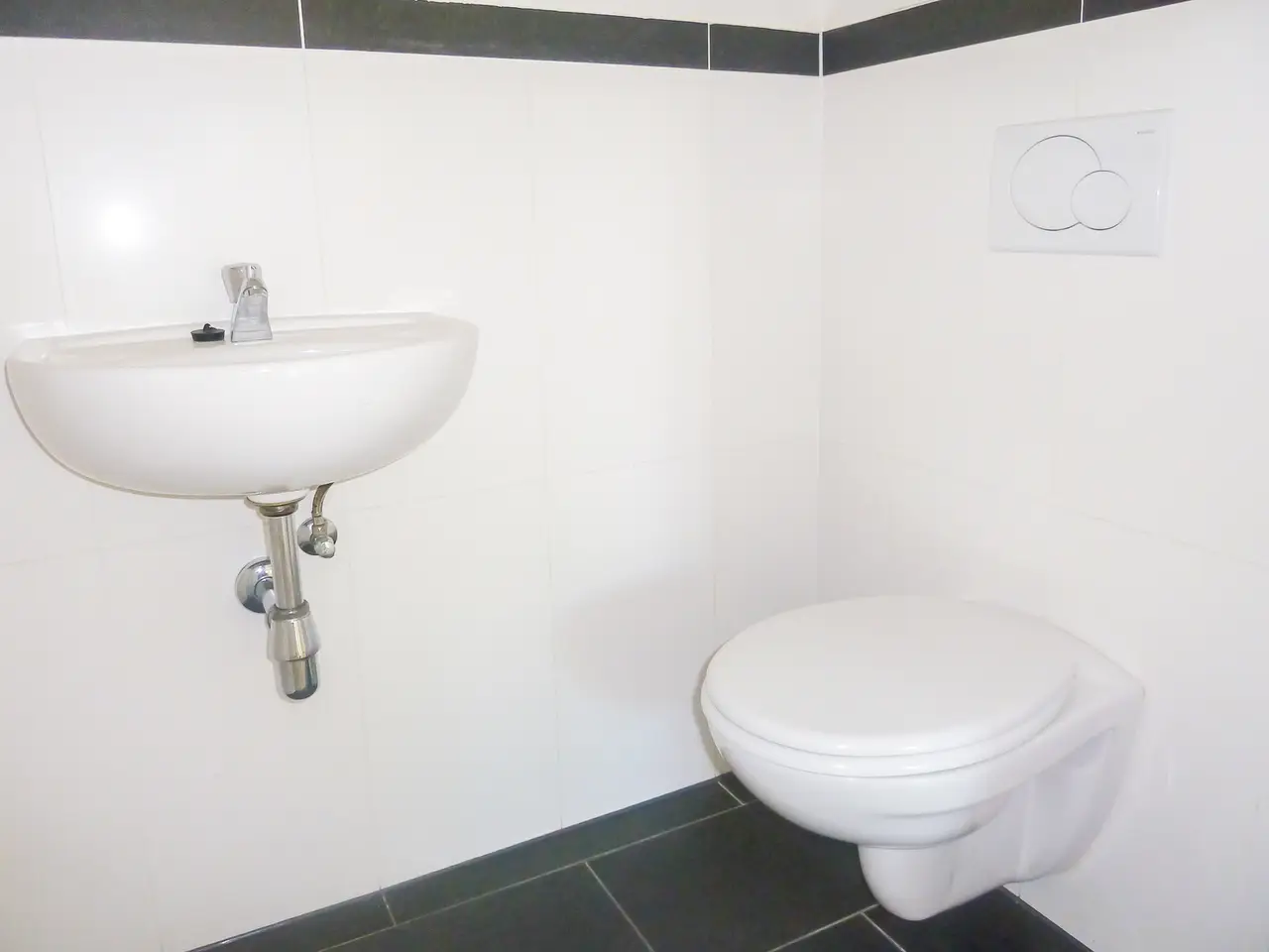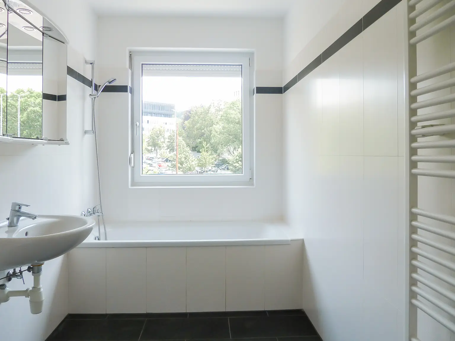 - Badezimmer mit Badewanne und Waschmaschinenanschluss