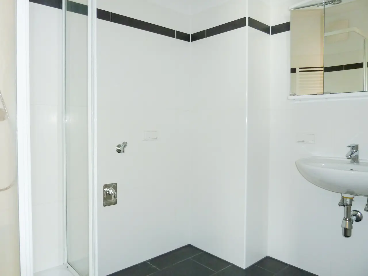 - Badezimmer mit Dusche und Waschmaschinenanschluss
