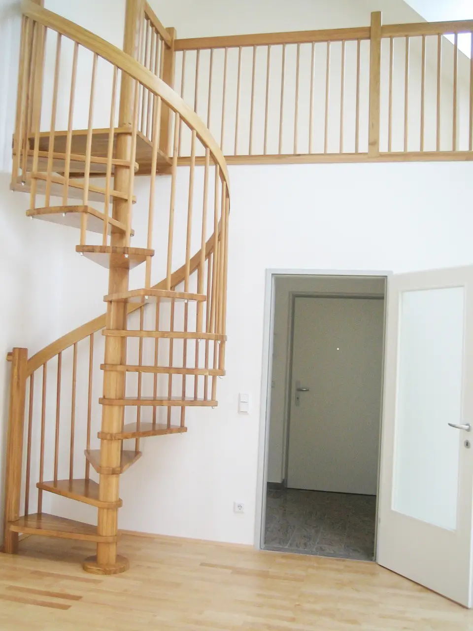 - 3 Zimmer: Schlafzimmer, großzügiges Wohnzimmer, Zimmer/Büro erreichbar über die Wendeltreppe, Terrasse