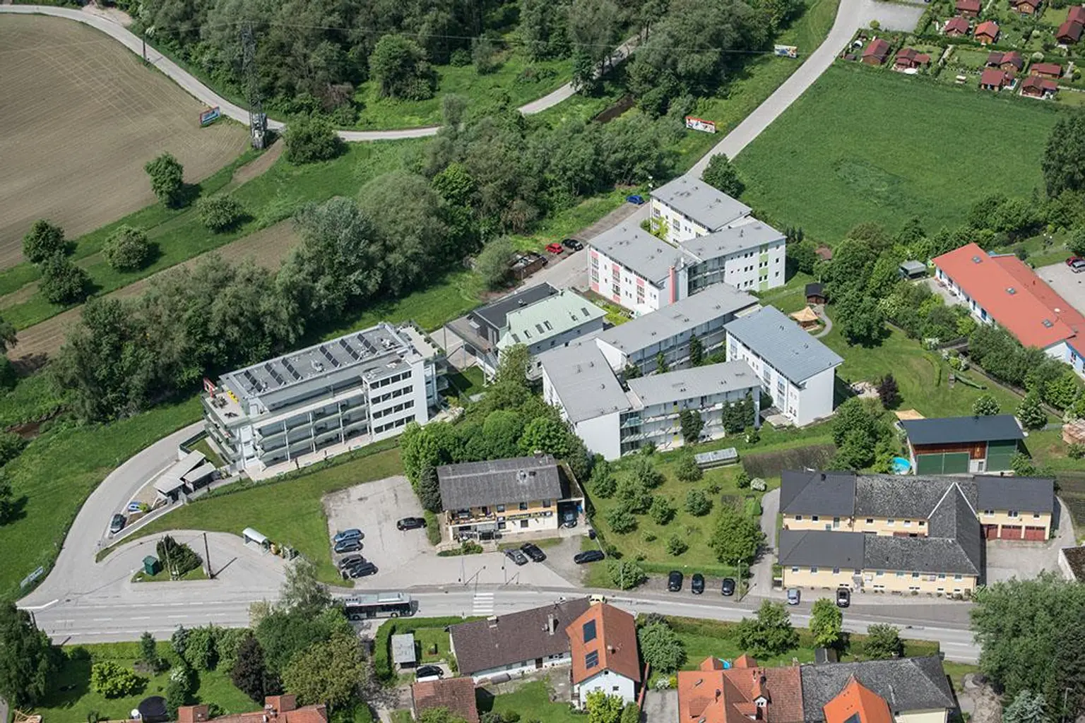 Die 1996 fertiggestellte Wohnanlage in Plesching besteht aus insgesamt 65 Einheiten, die sich auf Erdgeschoss, Obergeschoss und Dachgeschoss verteilen.