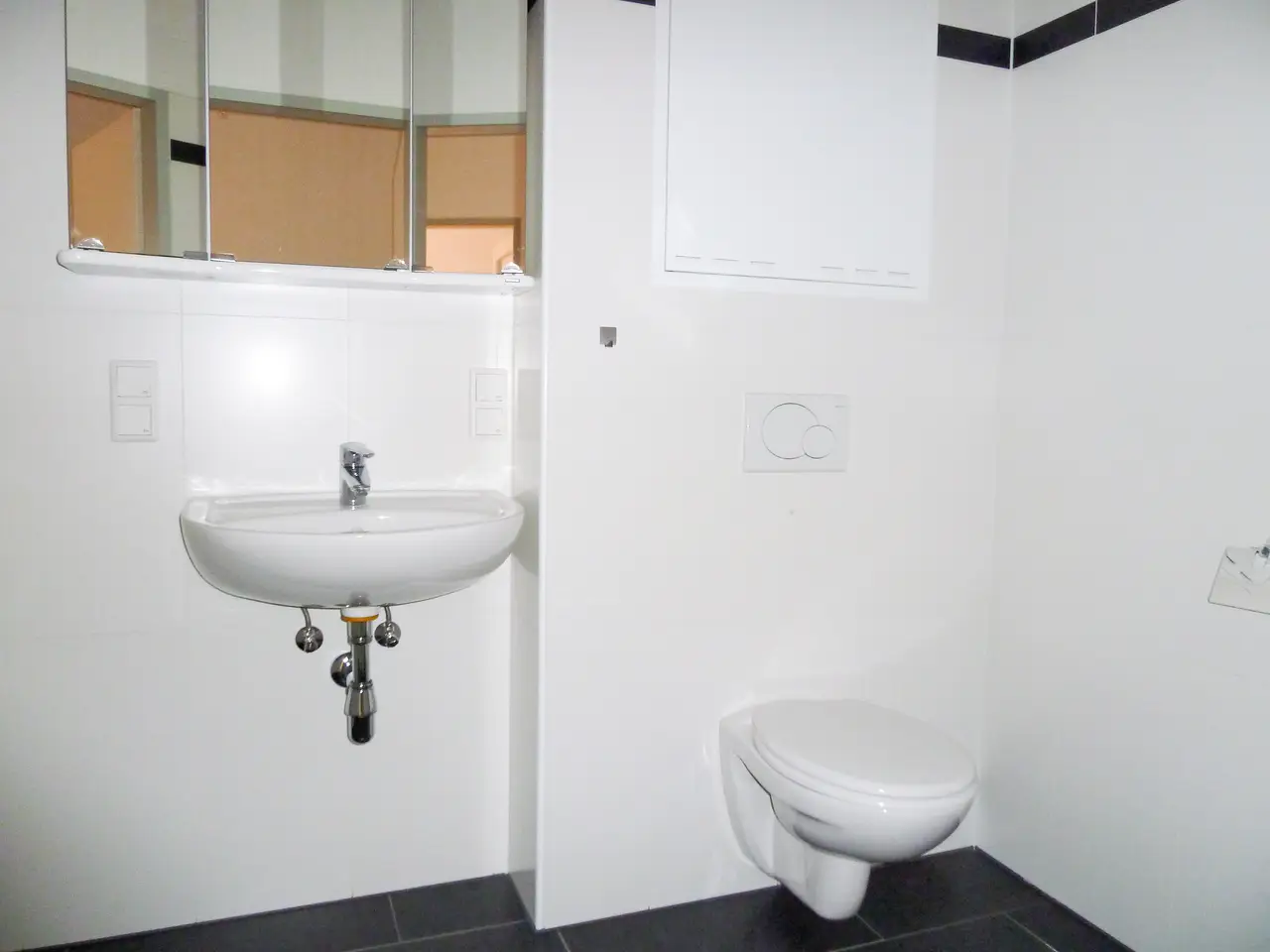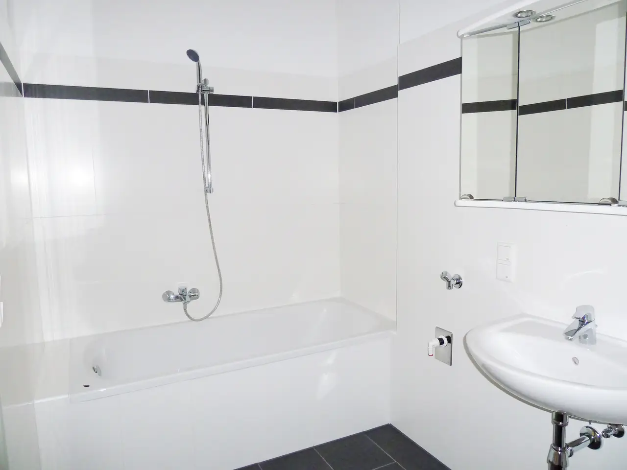- Badezimmer mit Badewanne, WC und Waschmaschinenanschluss