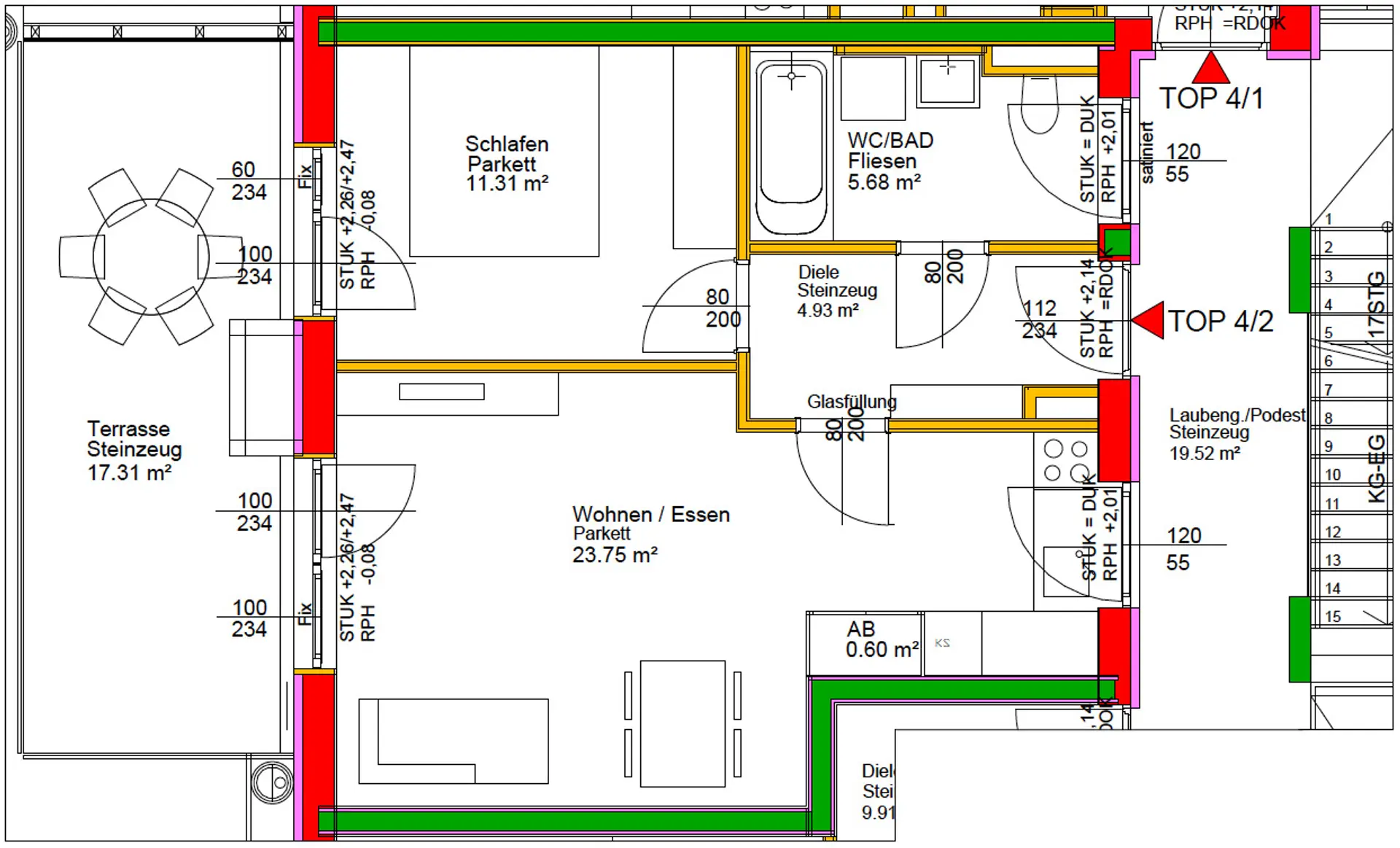 Jede Wohnung verfügt über eine moderne, möblierte Küche inklusive E-Geräten, sowie ein stilvoll ausgestattetes Badezimmer. Für zusätzlichen Stauraum sorgt ein eigenes Kellerabteil, das sich bequem im 1. Kellergeschoss befindet. Alle Wohnungen sind mit großzügigen Terrassen ausgestattet, die viel Freiraum im Freien bieten. Besonders hervorzuheben sind die fünf Penthouse-Wohnungen, die durch großzüge Grundrisse und herrliche Ausblicke überzeugen.