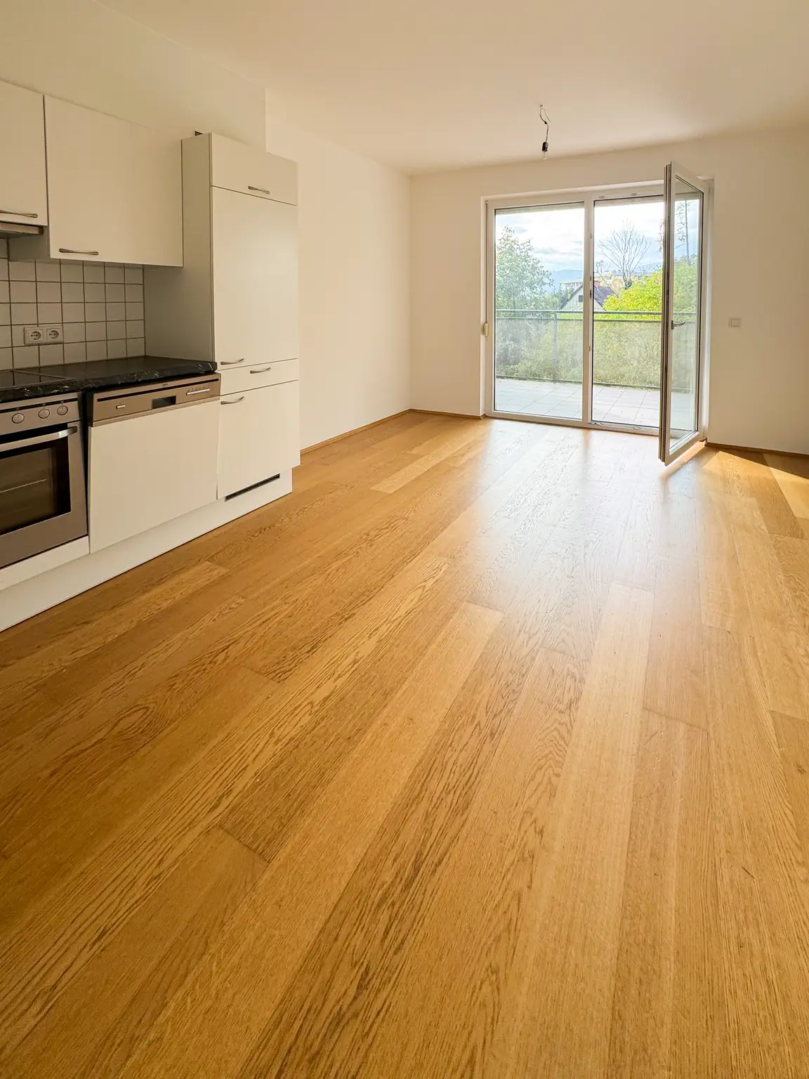 - Wohn-/Essbereich mit Komplettküche inkl. E-Geräten